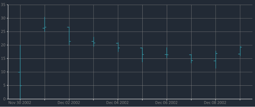 Easily monitor price movement over a period of time using OHLC chart. This is a financial chart common in stock trading.