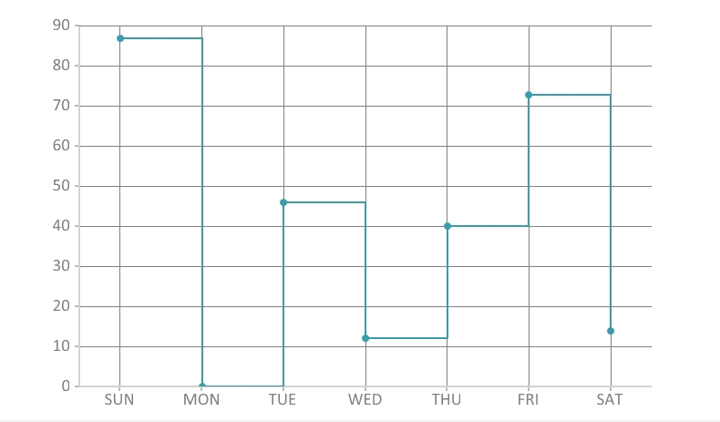 Step line chart is derived from line chart and is used to display non-uniform changes and show periods with no data and as well as its magnitude.