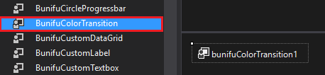 Simply locate BunifuColorTransition control in your toolbox and drag it on to your form. You can then customize using custom properties as it will be elaborated later in this article.