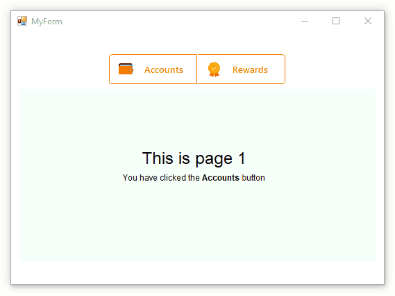 Bunifu Button also gives you the ability of toggling focus on when clicked and off when lost focus. This gives you the chance to have a tab-like effect when you have a set of arranged buttons (button group) all doing something almost similar, for example, when working with Bunifu Pages, you can use a Bunifu Button group with each displaying a certain page.
