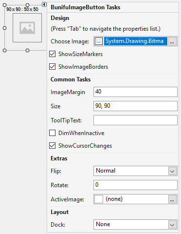 Below are the customizable productivity and design properties of the Bunifu Image Button