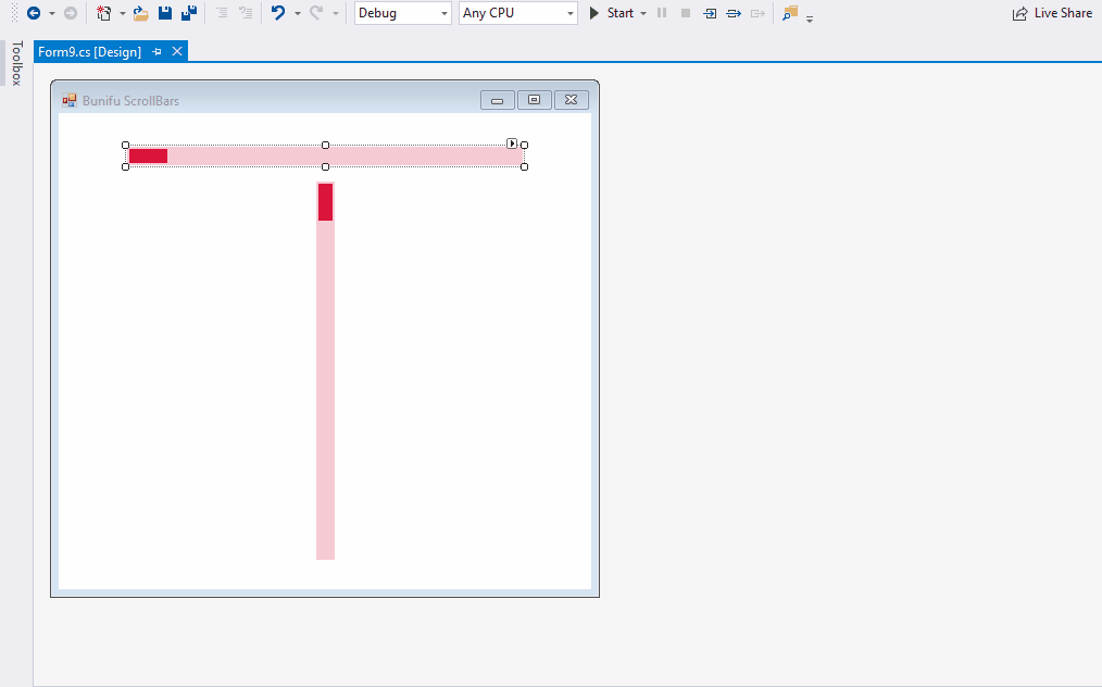 Using the property BindingContainer , Bunifu ScrollBars can blend easily with container controls, allowing users to scroll through items just as they do with the standard windows scroll bars.