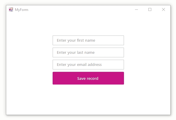 Bunifu Textbox gives you the ability to provide text placeholders to help inform users of the kind of content required before entry. You can modify the placeholder's color: