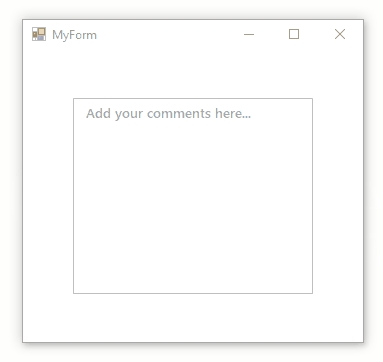 Bunifu Textbox supports multiline strings, allowing you to provide the same awesome experience as seen in single-line inputs using the Multiline property. You can also tweak the input's margin (position) in relation to the container using the TextMarginLeft and TextMarginTop properties.