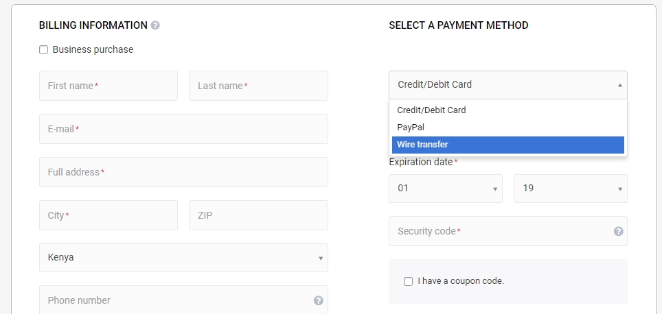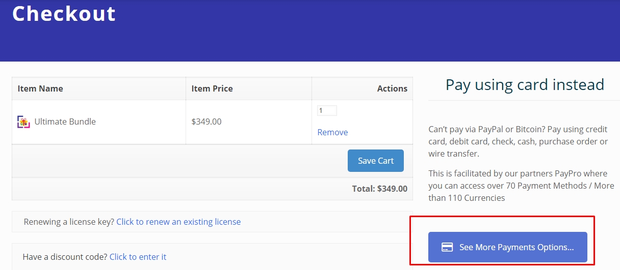 Select the product you would like to purchase, you will be redirected to an external page via PayPro store.payproglobal.com