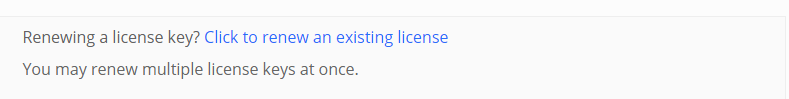 Click on click to renew an existing license link and paste your current license and click apply license renewal button to apply