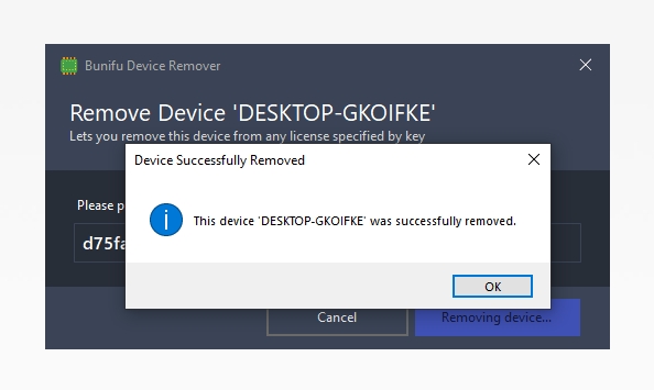 Note: Bunifu Device Remover needs to be run in the device associated with a specific license in order for the device to be deleteed. It does not work as a Device Manager.